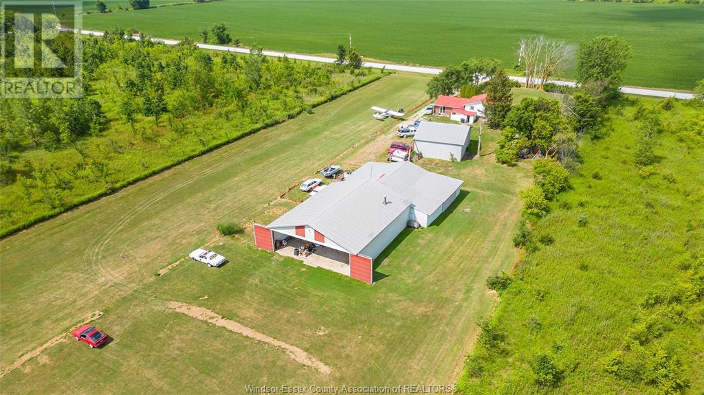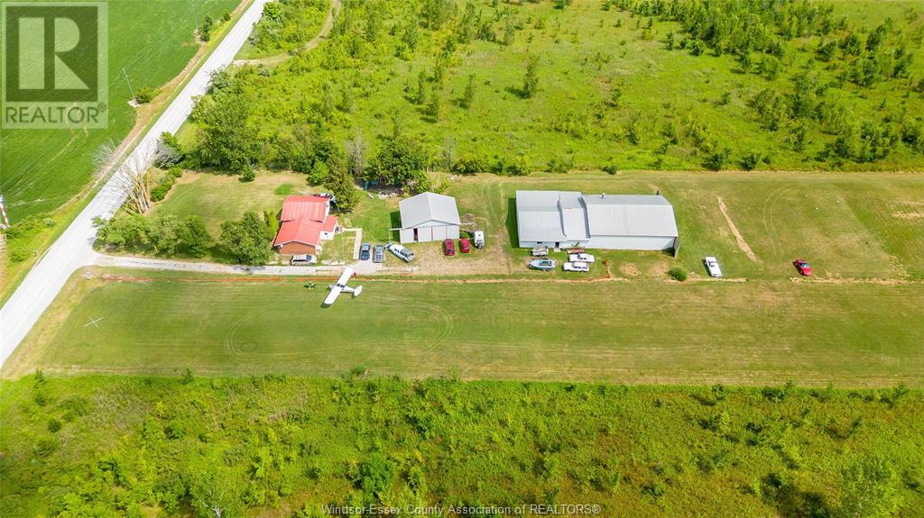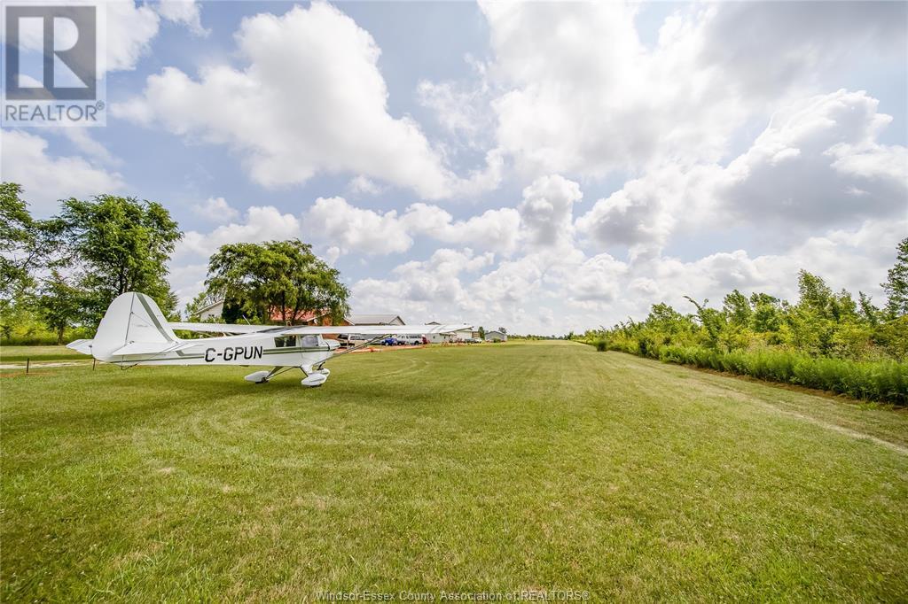 A truly rare aviation estate on 10 private acres in Essex County, featuring a grandfathered, registered private airport, with Transport Canada confirming no further airport approvals will be granted in the region. Just a short drive to the Ambassador Bridge, this property offers convenient access to the U.S. border, making it ideal for aviation businesses or frequent cross-border travelers. The property includes a well-maintained grass runway, three aircraft hangars (two at 32' x 40', and one at 110' x 48'), with capacity for up to 7 planes, plus multiple aircraft tie-downs. A dedicated practice track adds training and recreational value, while walking trails wind through the serene landscape. A comfortable 3-bedroom, 1.5-bath home provides a primary residence, pilot’s quarters, or staff housing. With its exclusive airport designation, existing infrastructure, and unbeatable proximity to Windsor and the U.S. border, this is a once-in-a-lifetime opportunity for aviation-focused buyers. (id:4555)