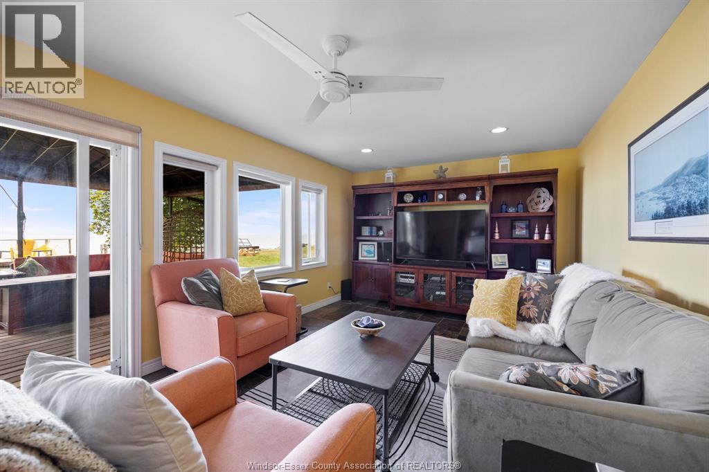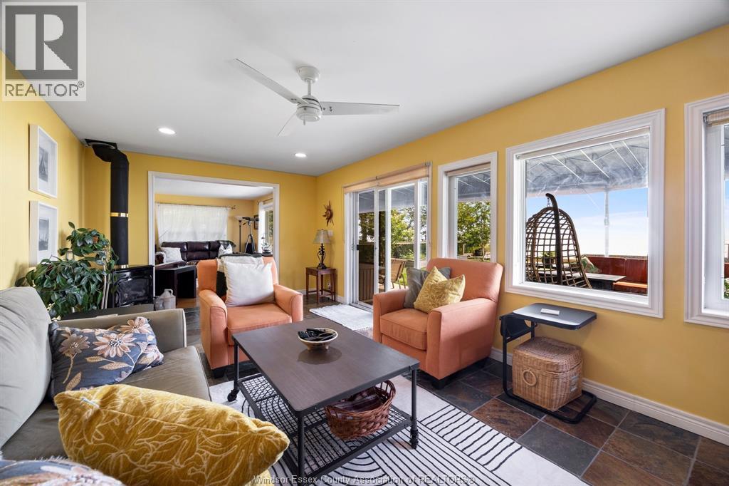 Enjoy breathtaking views from this 2,400 sq. ft. sprawling ranch nestled along the water’s edge. This beautifully updated home features a bright, oversized kitchen with island and walk-in pantry, spacious living and family rooms overlooking the lake, and remodelled bathrooms. The master bdrm includes a heated-floor ensuite for ultimate comfort. Hardwood floors, vinyl windows, and thoughtful updates throughout add to the home’s charm. Relax outdoors on the covered porch or patio, and take advantage of the 1.5-car garage with shop area. Roof (3 years). All of this located just minutes from wineries and a short drive to downtown Kingsville. Don’t miss the chance to live the lakefront lifestyle! (id:4555)