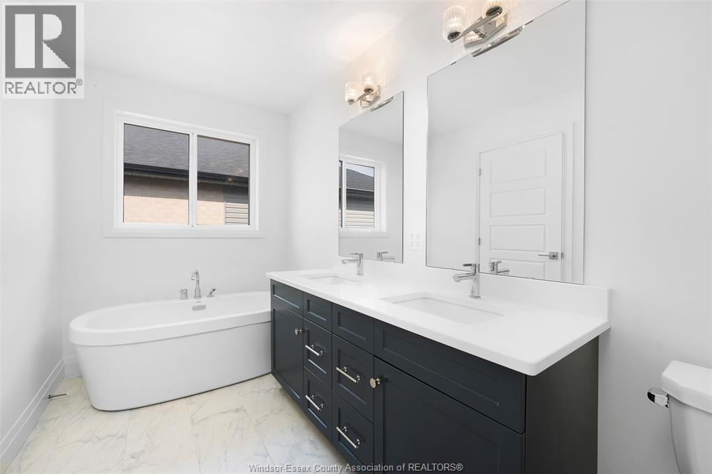 Exceptional Executive Rental – 75 Kingsbridge, Amherstburg. Discover this brand-new 2-storey home offering 2,700 sq. ft. of thoughtfully designed living space in Amherstburg’s premier Kingsbridge community. Perfect for discerning families seeking style, space, and convenience, this executive residence blends modern design with everyday function in one of the area’s most desirable neighbourhoods. The main level impresses with its open-concept design, soaring 9’ ceilings, wide-plank hardwood floors, and oversized windows that fill the home with natural light. The chef-inspired kitchen showcases custom cabinetry, quartz countertops, a large island with seating, and a walk-in pantry — ideal for family meals and entertaining. A dining area and bright living space provide the perfect flow, while a powder room and practical mudroom with garage access complete this level. Upstairs, retreat to the luxurious primary suite featuring a spa-inspired ensuite with a double vanity, glass shower, soaking tub, and a generous walk-in closet. Four additional well-appointed bedrooms, a stylish 4-pc bathroom, and an oversized laundry room with sink add exceptional comfort and convenience for the whole family. The full unfinished basement with high ceilings offers endless possibilities for a recreation room, home gym, or extra storage. Outside, the deep backyard with no rear neighbours provides privacy and space to relax or play. Additional highlights include a double garage with inside entry, energy-efficient mechanicals, and new high-end appliances. Located just minutes from Amherstburg’s historic downtown, waterfront, top-rated schools, parks, trails, and shopping, this home combines modern living with small-town charm. This move-in ready executive rental is available immediately for qualified tenants. Employment, income, & credit score verification is mandatory with all rental application submissions. (id:4555)